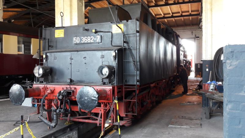 Wie die treuen Leser unserer News bereits mitverfolgt haben, führen wir gerade eine Hauptuntersuchung an der Dampflokomotive 50 3570-4 durch. Damit der „amtliche Stempel“ für die Durchführung der Untersuchung gegeben werden kann, müssen alle Teile an der Lok einwandfrei funktionieren. Da das beim Tender der Lok, also dem „Anhängsel“, in dem die Betriebsstoffe mitgeführt werden, noch einige Arbeiten mit sich zieht, wurde dieser Tender mit dem der Dampflok 50 3682-7 getauscht, der noch über laufende Fristen verfügt. Dieser Tausch beschleunigt also die Wiederinbetriebnahme der 50 3570-4.