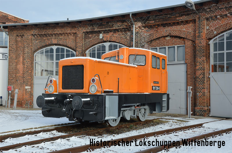 ![]() Bei winterlichem Wetter präsentiert sich 101 726-8 vor dem Lokschuppen II im Bw Wittenberge. |