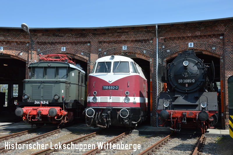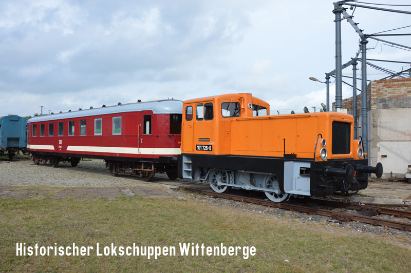 ![]() 101 726-8 präsentiert sich mit dem in Aufarbeitung befindlichen VB 197 805-5 im Bereich des ehemaligen Rundlokschuppen I. |