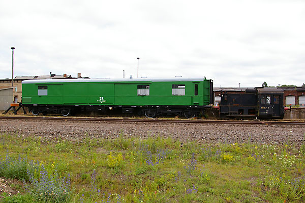 Von 2008 bis 2009 haben wir mit tatkräftiger Unterstützung durch MAE-Kräfte diesen interessanten Waggon optisch und rollfähig aufgearbeitet.