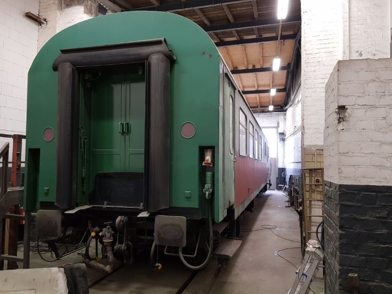 Erste Arbeiten wurden auch an unserem Neuzugang, dem Beiwagen 190 851 ausgeführt. Die Stirnseiten wurden teilweise von Schmutz und Farbe befreit und die Scheiben ausgebaut, damit wir die Korrosionsschäden begutachten können. Wie es aussieht, ist da leider einiges zu tun.
